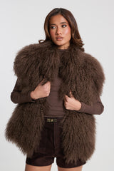 The Cassandre Mongolian Gilet brings together premium fur and modern styling. Featuring a structured stand collar that defines the neckline and cap sleeves for ease of movement, this piece works beautifully as a layering essential or standalone statement. Designed for autumn wear, it adds refined elegance and lasting quality to your seasonal wardrobe.