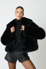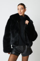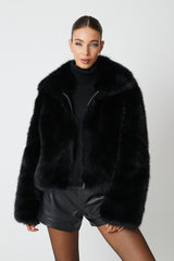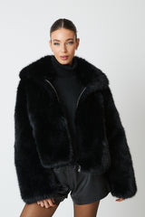 Introducing the Amara Premium Faux Fur Bomber. Made with only the highest quality faux fur, this luxurious bomber jacket features a stylish collar and convenient zip fastening. Experience both comfort and style with this must-have addition to your AW wardrobe.