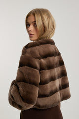 Elevate your outerwear with the Cleo Chocolate Rex Fur Coat, a striking statement piece that combines luxury with contemporary style. Crafted from sumptuous chocolate-hued rex fur, this cropped silhouette flatters the frame while exaggerated sleeves command attention.