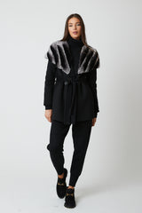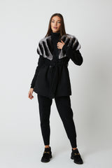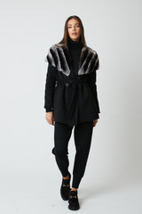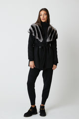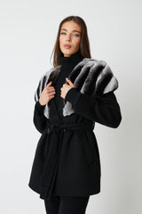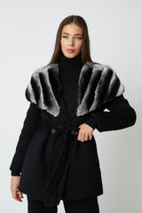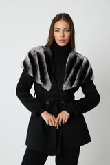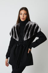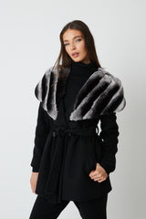 Expertly crafted, the Cortina Wool Coat is a luxurious addition to any wardrobe. Made from high-quality wool, it boasts a belt tie fastening for a customizable fit and rex fur cape detailing for added elegance. Stay warm and chic in this beautifully designed coat.