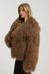 Keep it super cool and super cosy in our Lula Coat. With a natural curl to give the most luxurious feel and discreetly concealed fastenings and pockets and square collar detail, this coat makes a statement wherever you go.