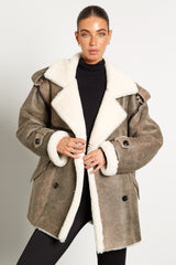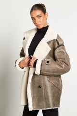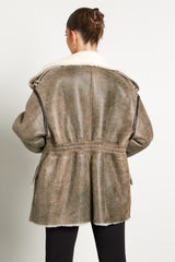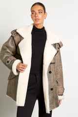 Our Sara Shearling Coat now in a shorter length. Designed for a super oversized fit, cinched back detailing for the most flattering fit.
