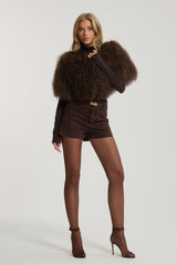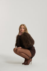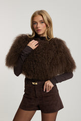 The Vienne Mongolian Fur Cape is an elegant layering piece designed to elevate your autumn and winter wardrobe. Crafted from luxurious Mongolian fur, this cape offers exceptional warmth whilst maintaining a sophisticated silhouette. Dress up or down.