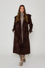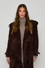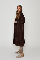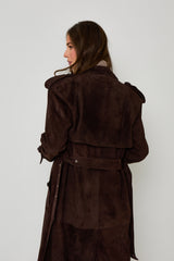 This Kendall Suede Trench Coat is a luxurious, must-have piece made from 100% premium suede. With its classic double breasted design and belt tie, it offers a timeless and versatile look. Elevate any outfit with this sleek and sophisticated coat.