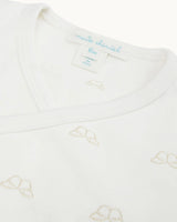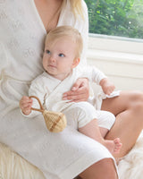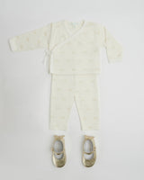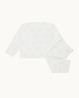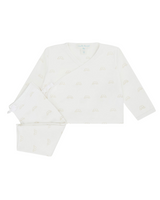Crafted from the softest Pima Cotton, this luxurious ensemble comes in a delicate pink and pure fresh white, providing the ultimate comfort for your little one. The wrap top, with its adorable dainty side tie, adds a touch of style to this adorable outfit. perfectly coordinated with the matching printed Angel Wing™ bottoms.