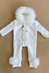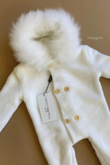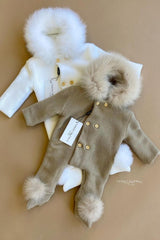 Knitted Pramsuit Made from Double Lined Acrylic Knit with 100% Fox Fur Trim Button Fastenings, Detachable Fur, 2 Pockets
