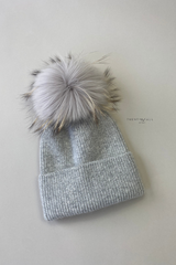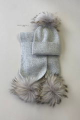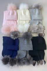 Super Soft, Thick Cashmere and Wool Blend Hat and Scarf Set with 100% Raccoon Fur Pom Pom