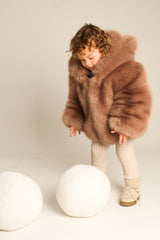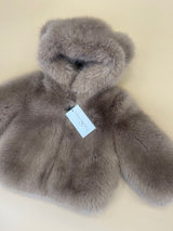 The cutest little Bear Bomber made from 100% luxury faux fur. The warmest, cosiest coat for your Mini. Zip fastening.