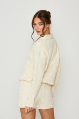 This Cable Knit Set combines a classic jumper with matching shorts, crafted for coordinated comfort and style. The textured knit provides warmth and breathability, making it ideal for transitioning seasons. Designed with attention to detail, this set offers a refined yet relaxed look, perfect for effortless layering or standalone wear. Its versatile silhouette ensures comfort without compromising on sophistication.
