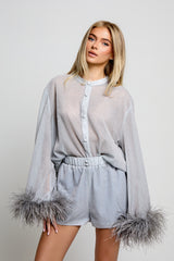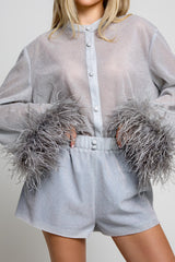 The Cady Shorts combine a high-waisted silhouette with a shimmering glittery fabric, offering a stylish and eye-catching look. Featuring an elasticated waist for comfort and decorative button details, these shorts are fully lined to ensure a smooth fit. Pair them with our Loulou Shirt for a chic, coordinated outfit that balances sparkle with sophistication.