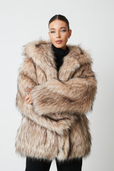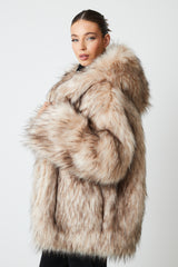 This statement coat will really turn heads with its oversized hood and luxury faux fur. Keep cool yet cosy this winter.