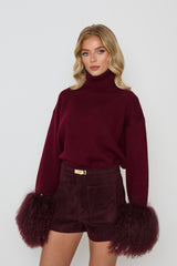 This seasons most wanted cuff. Polo neck drop shoulder jumper featuring a detachable Mongolian fur cuff.