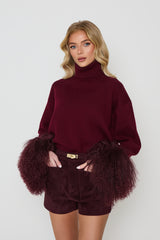 Wool Blend Jumper, 100% Mongolian Fur Cuffs