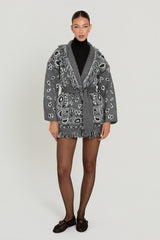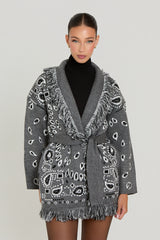 Introducing Lafayette, a standout addition to our knitwear collection. This statement cardigan features delicate fringe detailing along the edges, adding texture and movement to your outfit. Crafted with a cashmere blend, it offers warmth and comfort without compromising style. A matching belt lets you tailor the fit for a flattering silhouette. Designed in one size, Lafayette combines effortless elegance with cozy sophistication.
