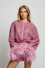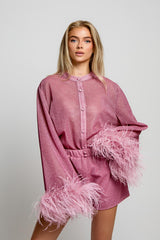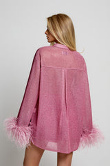 Crafted from shimmering glitter fabric, the Loulou Shirt features delicate ostrich feather trims on both cuffs, adding a touch of refined elegance. Its loose, flowing silhouette ensures comfort while maintaining a sophisticated, statement-making presence suitable for expert styling.