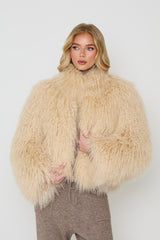 Indulge in luxury with the Stella Mongolian Fur Coat. Made from the finest mongolian fur, it features a stylish stand collar, making it a sought-after addition to any wardrobe. Stay warm and stylish in this must-have coat.