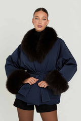 The Billie Goose Down Coat offers superior warmth through its high-quality goose down filling. Crafted with a luxurious fox fur collar and cuffs, it provides a distinctive, elegant finish while enhancing comfort around the neck and wrists. This expertly designed coat balances premium materials with timeless style.