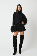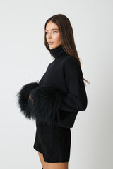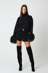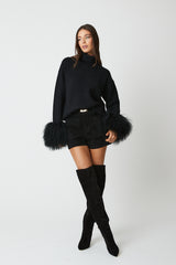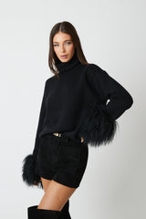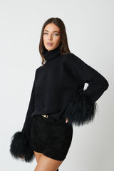 This seasons most wanted cuff. Polo neck drop shoulder jumper featuring a detachable Mongolian fur cuff.