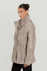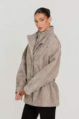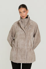 Step into effortless style with the Suki Suede Jacket. Featuring a double fastening and ruched waist detailing, this jacket combines premium suede softness with a cool, relaxed fit. Perfect for adding a playful yet chic edge to any outfit, it’s your new go-to for laid-back luxury.